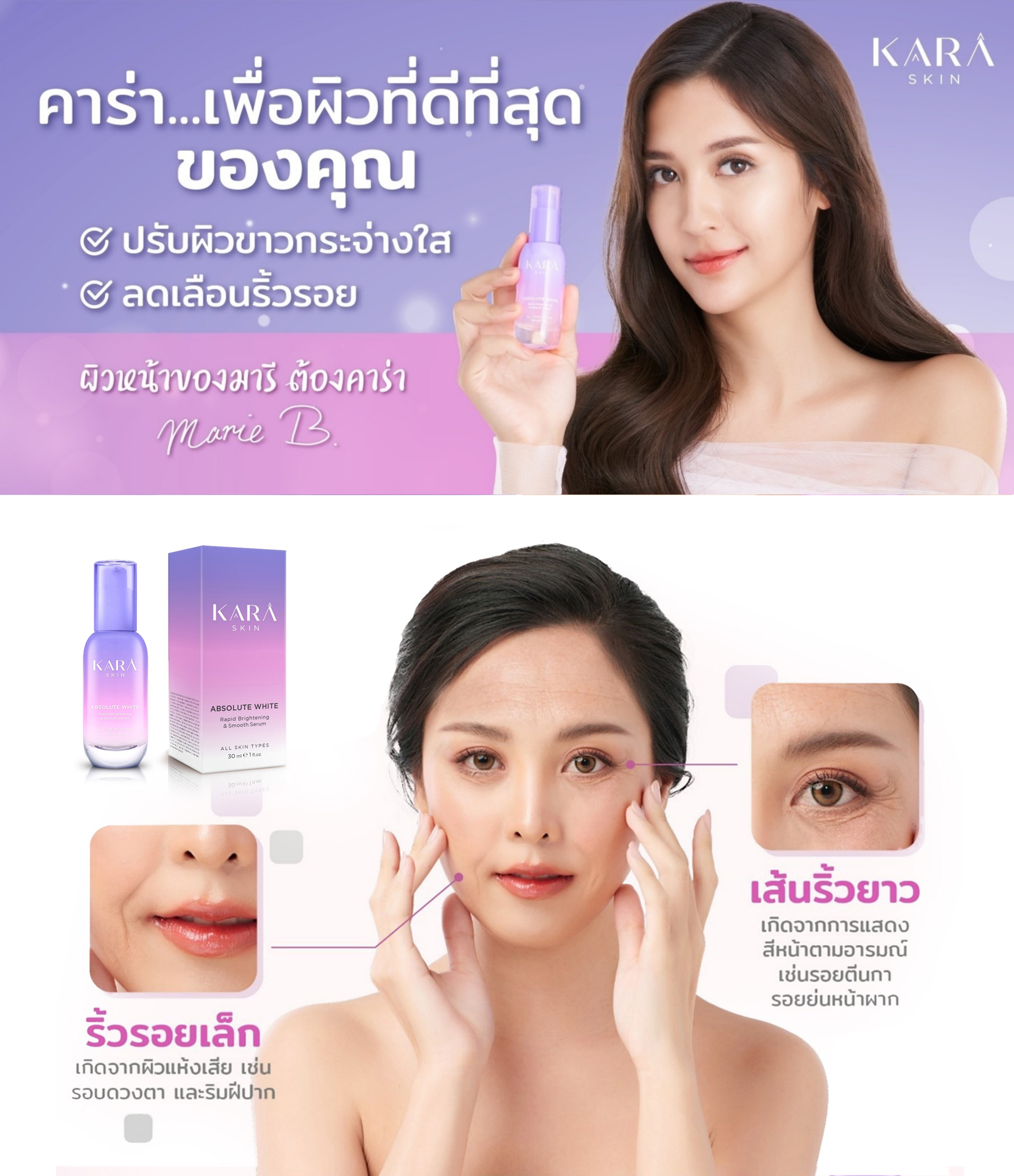 กดเซรั่ม KARA 1-2 ปั๊ม ทาให้ทั่วใบหน้า